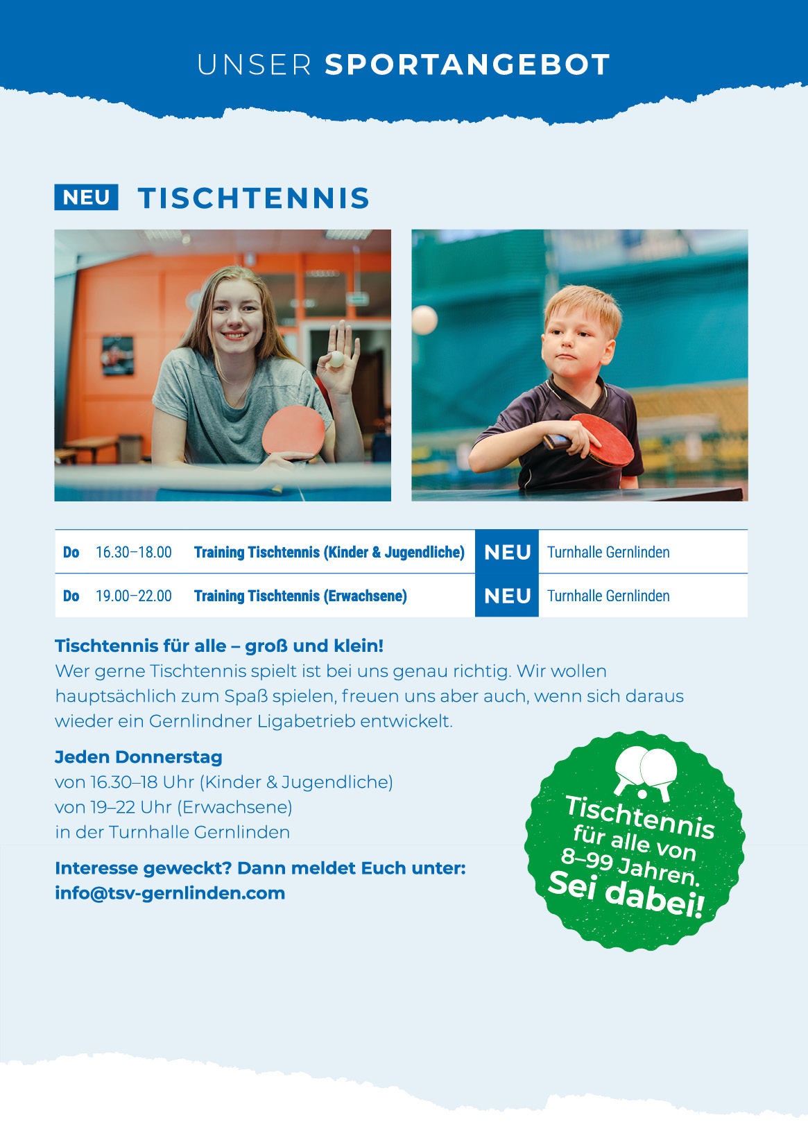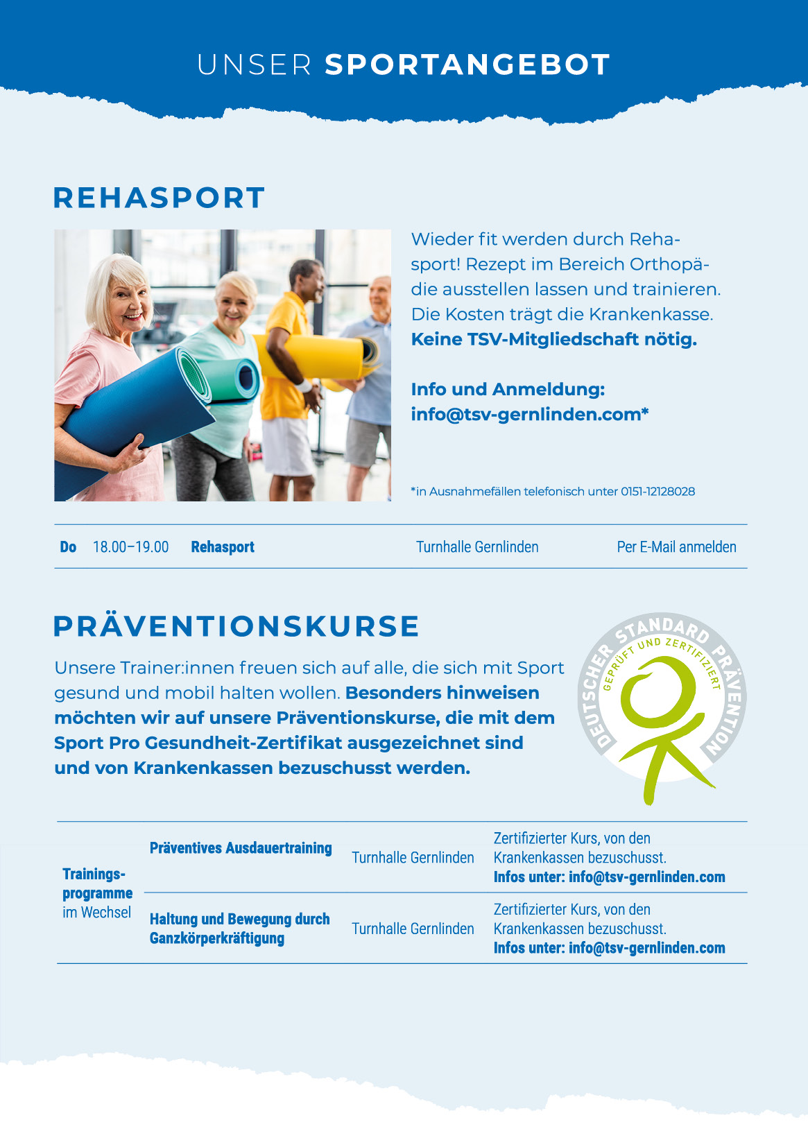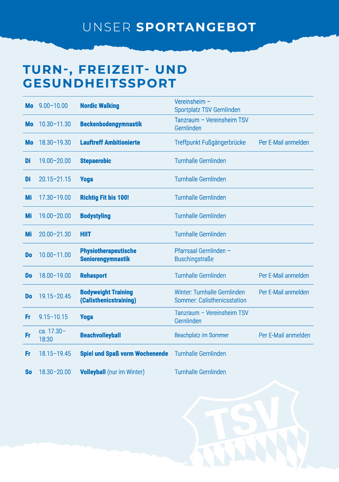 Sportprogramm des TSV Gernlinden